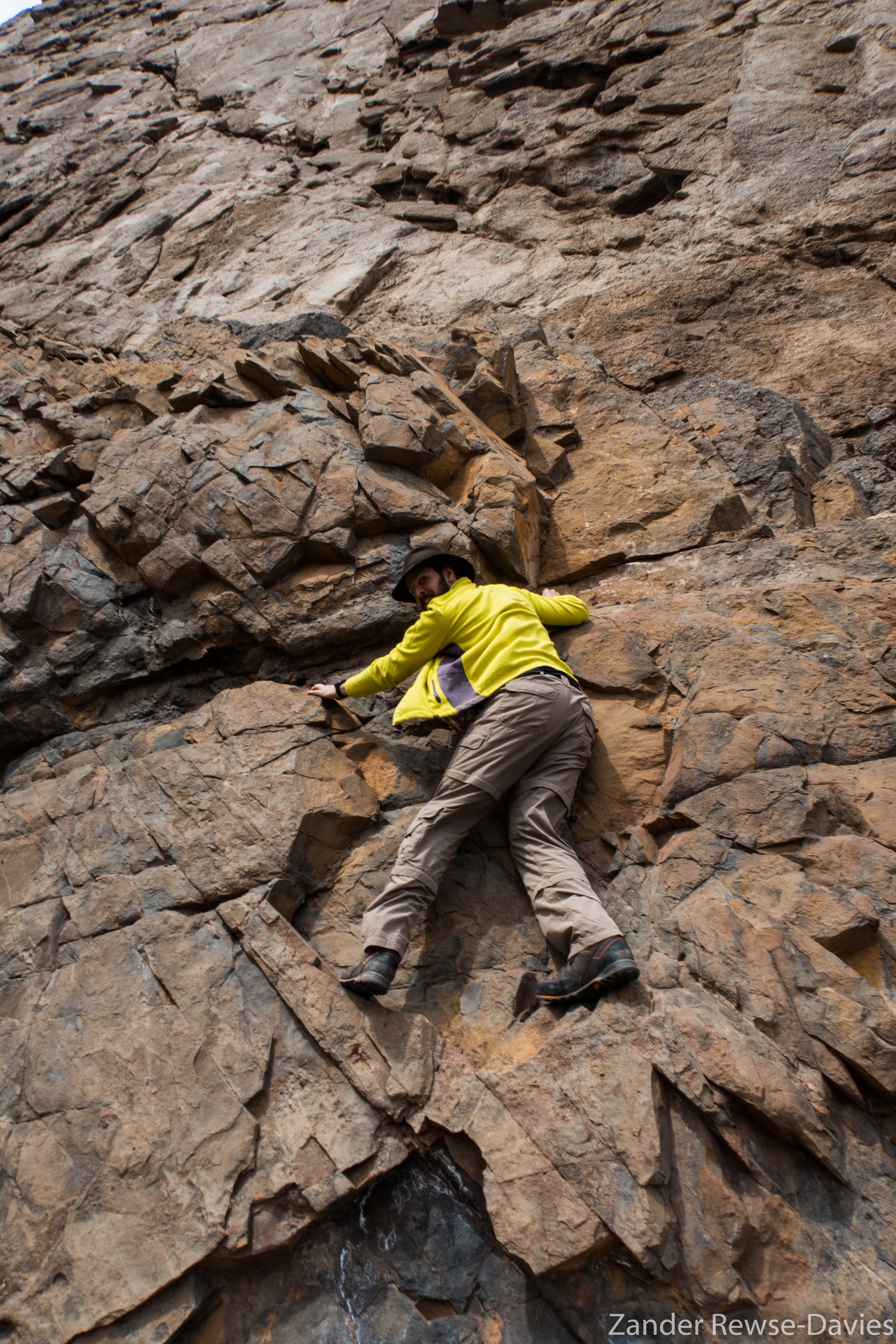 With a lunch spot like no other, we sat down for a well-earned bite and a spot of tea. Ian was unable to find his food, until the point he put his jacket on; here he discovered his alter ego of empanada-hand-man, causing me and Guy to collapse with laughter. Silliness dispensed with, Ian and I decided to navigate further upstream of the glacier, while Guy settled down for a well needed sleep in the sun, clearly exhausted by the walk and our increasing altitude. After reaching the empty camp location, we paused to discuss the pros and cons of various routes we’d take up the enormous rock face, one of the world’s most dangerous big walls. Three vertical kilometres of rotten rock, avalanching slopes and shedding ice cliffs is enough to dissuade even the most audacious of climbers, and many of those who do succeed with their lives, do so at the cost of their fingers and toes. Despite its deadly reputation, a Japanese man has even climbed it in winter. He reputedly watched the face for days to note when the avalanches occurred and then timed his sheltering behind rocks during the ascent to avoid being swept off the face to his doom.