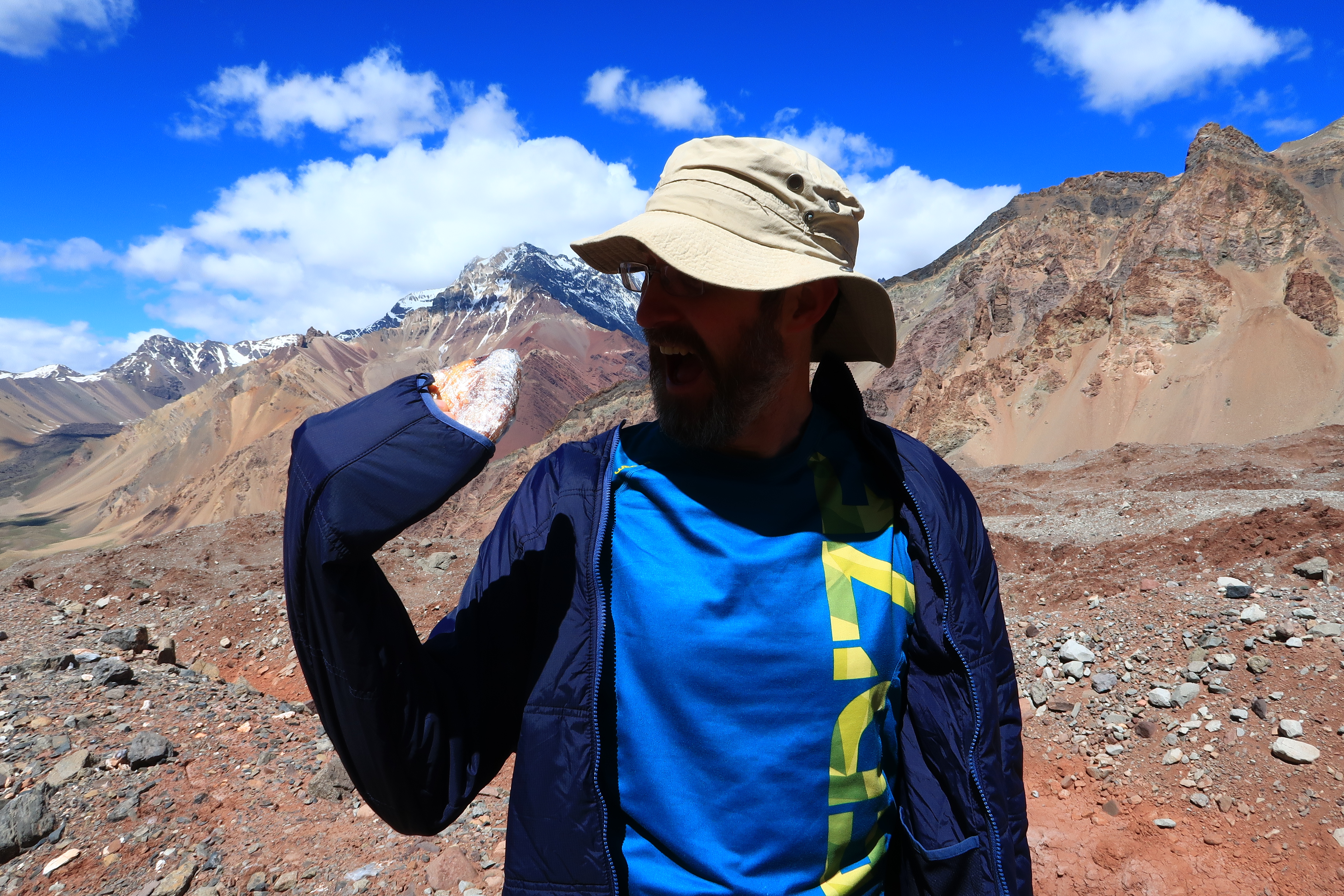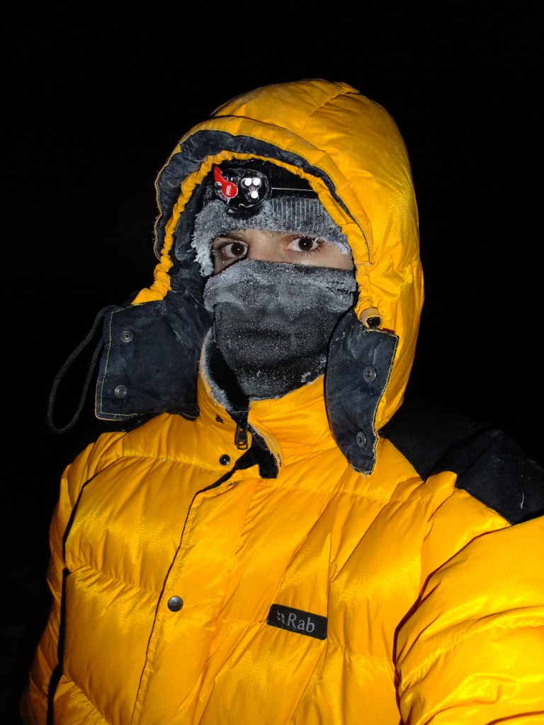 As you may have guessed, it is not just training that gets you up the mountain. After all, you can’t just wander up in your birthday suit and expect to retain all your appendages. However, I had most of the equipment needed from my Scottish mountaineering exploits, including a wildly thick Rab down expedition jacket I got on eBay some years ago, in yellow of course, as with most of my mountain gear (it makes it easier to find the body). Scottish mountains in winter can be a fearsome place, and not just because of roving bands of half-cut locals. I’ve had a multi-day solo climb where the temperatures nudged -20 Celsius. However, Aconcagua can get colder and the wind speeds can be exceptional; in fact, many climbers say it’s often colder on the summit of Aconcagua than on many Himalayan mountains. This is further compounded by the fact that, unlike in Scotland, one moves very slowly at altitude. What would be a sweat-inducing speed climb in Scotland to beat the dwindling daylight turns into a slow trudge that would have most people overtaken by grandma on her zimmer-frame at sea level.