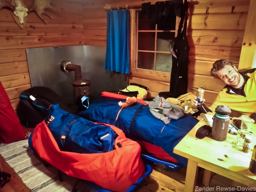 Many sayings relate to getting something right on the third attempt, and having just fallen victim to two failed attempts to set up our tent, we were determined to ensure that these sayings had merit. It was with some grace that we were granted sufficient daylight to humour these clumsy attempts while still allowing for a last ditch effort. In our defence, pitching a tent in winds around 100 kph is no easy feat, but doing so in the most unconsolidated and windblown snow conceivable requires a superhuman effort. The forecast had predicted gusts of up to 140 kph but I couldn’t possibly verify if the reality was ever close these ludicrous numbers. I suspect not. Now very much willing to compromise on the quality of the tent site, we resorted to shoehorning the tent into the trees to allow us to tie the upwind side off to something substantial with deeper roots than our embedded skis would allow. While the snow here was even more deep and unpleasant than we could have cared for, it was worth it for having the tent upright throughout the night.