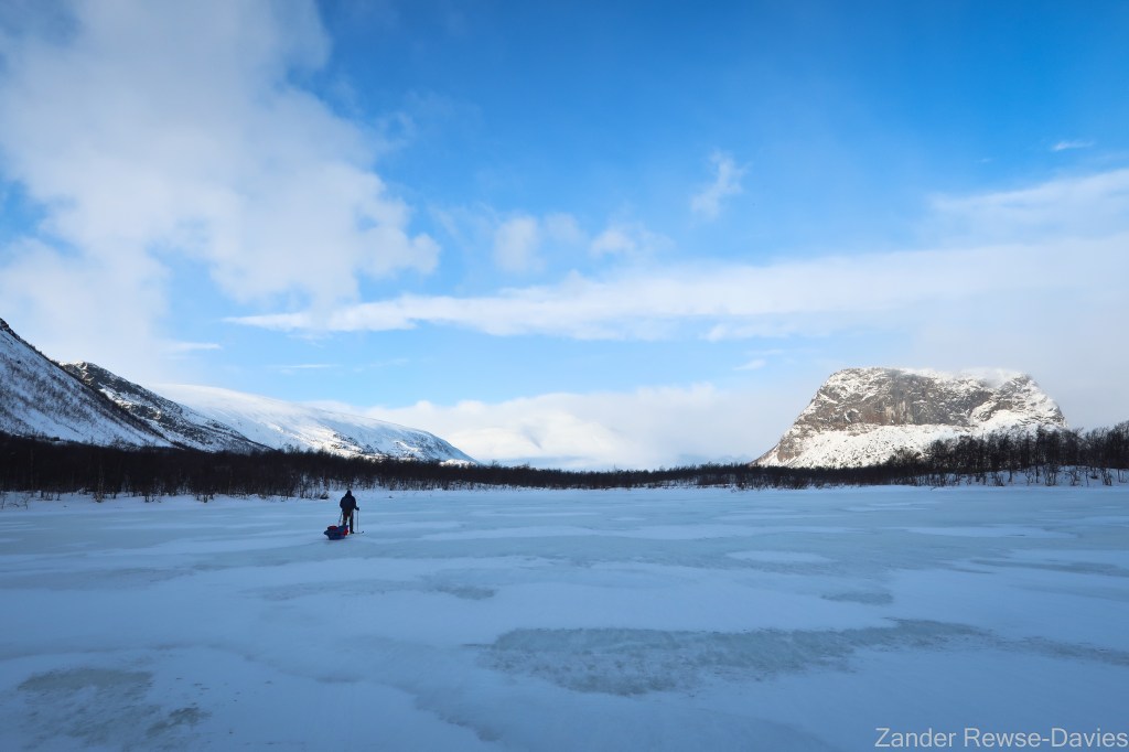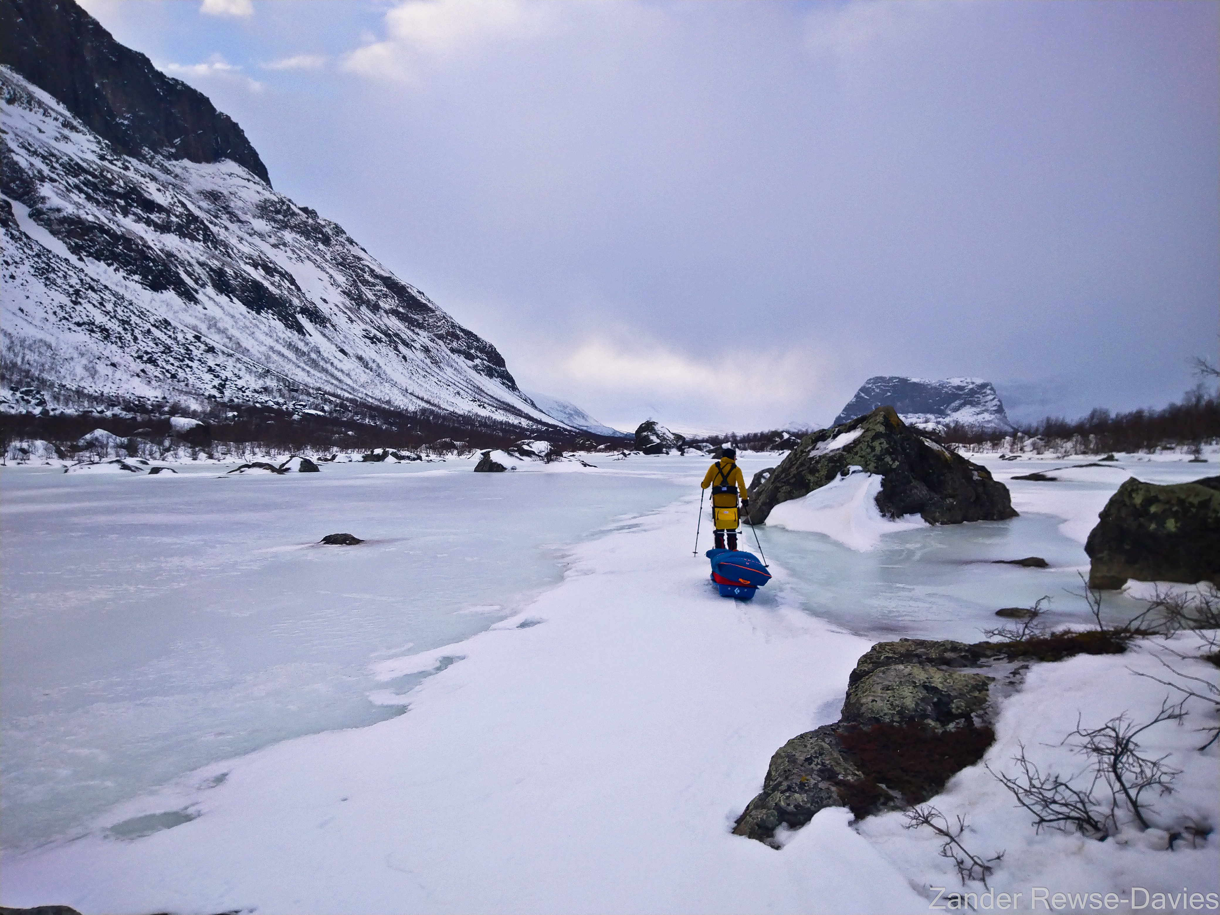 While many might rejoice at the prospect of milder conditions in a landscape where the mercury can plummet to -40 degrees, I was of no such mindset. Milder weather means thinner ice on the mountain lakes and rivers which we would have to navigate for a significant proportion of the route. With this in mind, we set off up the winding track through the woods from the little village of Kvikkjokk that was so familiar of my unsuccessful expedition two years earlier. If you are unfamiliar with my previous toil, I urge you to first read either the articles concerned from that adventure, or my introductory article found here.