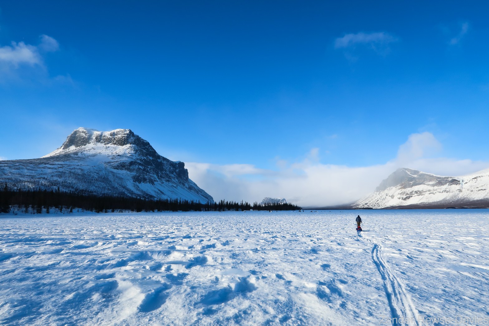 The winter of ‘23 got off to a beastly start with record breaking warm temperatures in the Arctic, affecting both wildlife and many a ski trip alike. Such were the circumstances that Ian and I started our Sarek expedition, in the far north of the Swedish Arctic, in conditions that might befall one on a chilly spring morning in Britain. With temperatures on the positive side of zero degrees, it was a disconcerting start to our two week adventure through those spectacular valleys of Sarek national park. The only reminder of our remote and inhospitable location were the hundred kilometre per hour winds that howled around us.